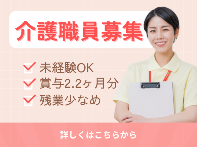 グループホームでの介護職/月収例29万円/賞与計2.2ヵ月分