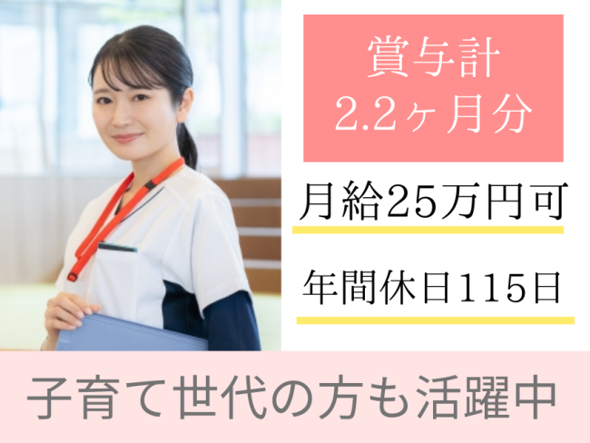 | 職種 | 介護医療院での看護職/月収例25万円/賞与計2.2ヵ月分 |
