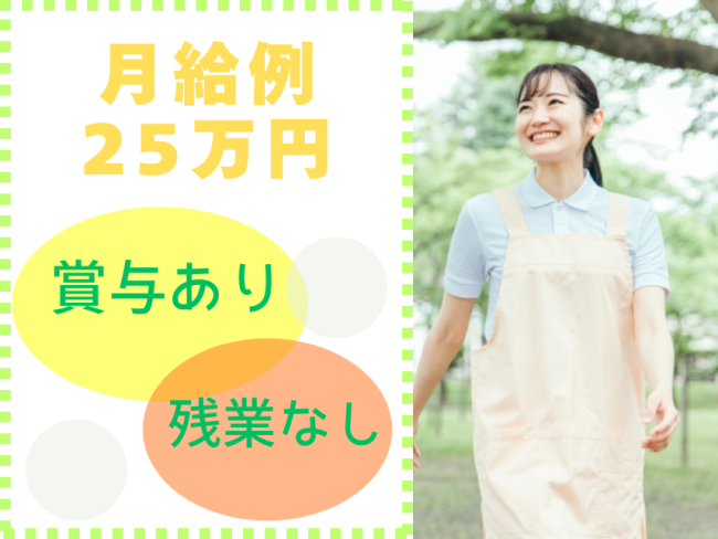 | 職種 | グループホームでの介護職/月収例25万円/残業なし |