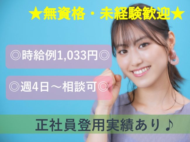 | 職種 | 特別養護老人ホームでの介護職/無資格可/正社員登用あり |