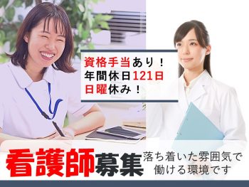 | 休日・休暇 | ■休日 日曜日、その他 ■週休二日制 毎週 ■その他の休日 シフトによる ■年間休日:120日 |