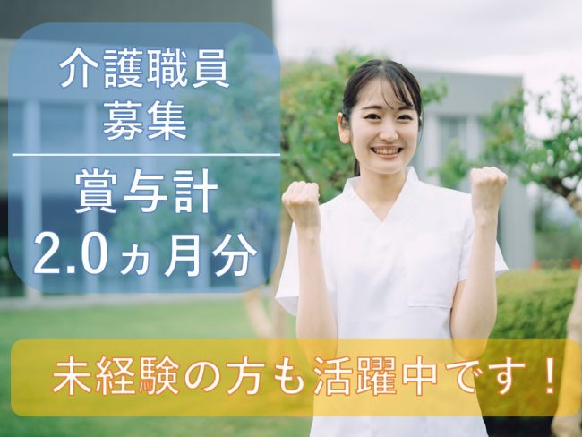 | 職種 | 小規模多機能型居宅介護での介護職/月収例24万円/賞与計2.0ヵ月分 |