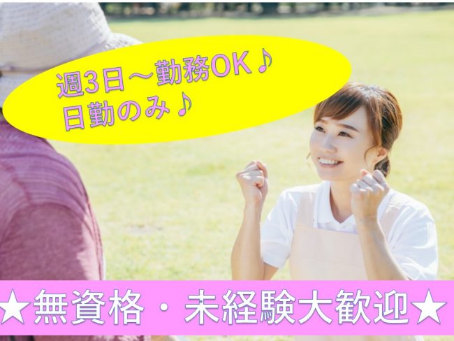 | 職種 | デイサービスセンターでの介護職員/未経験可/日勤のみ |