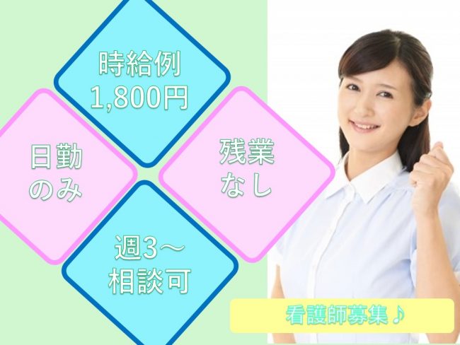 | 職種 | 特別養護老人ホームでの看護職/時給例1,800円/残業なし |
