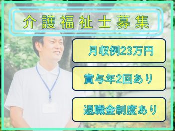 | 職種 | 特養での介護職員/月給例26万円/賞与あり |