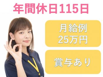 年間休日110日以上施設見学OK昇給あり月給20万円以上可能未経験歓迎残業月10時間以下無資格歓迎産休・育児休業制度あり資格手当あり賞与あり(年2回以上)車・バイク通勤OK 募集要項