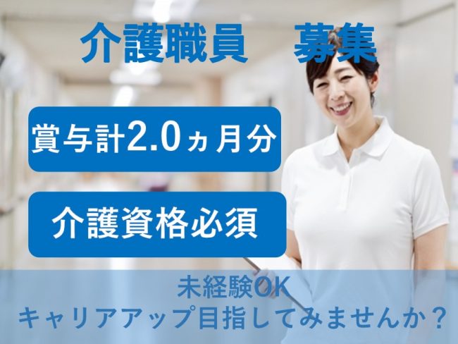 | 職種 | グループホームでの介護職/月収例23万円/賞与計2.0ヵ月分 |