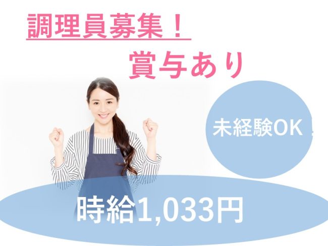 | 職種 | 介護施設での調理員/未経験可/賞与年2回/昇給あり |