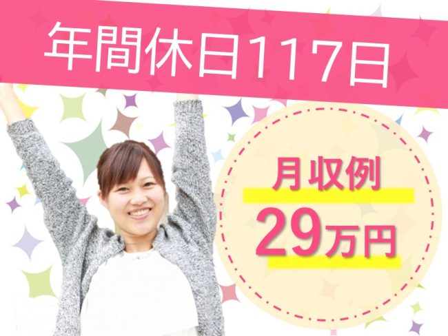 | 職種 | 介護老人保健施設での准看護師/月収例29万円/年間休日117日 |