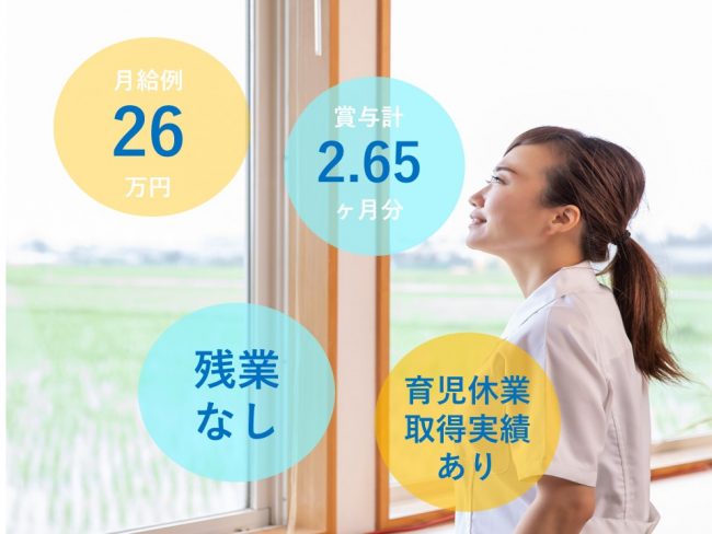 診療所での看護師/月収例26万円/賞与計2.65ヵ月分