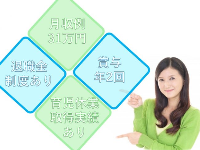 | 休日・休暇 | ■休日 その他 ■その他の休日 4週8休(業務カレンダーによる) ■6ヶ月経過後の年次有給休暇日数:10日 ■年間休日:110日 |