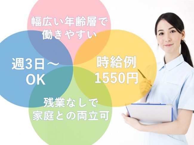 | 職種 | 小規模での看護職/時給例1550円/週3日~OK |
