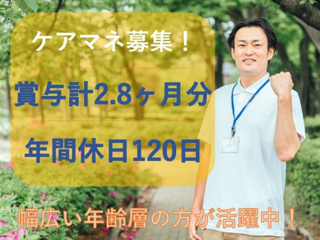 介護老人保健施設でのケアマネ/月収例30万円/賞与計2.80ヵ月分
