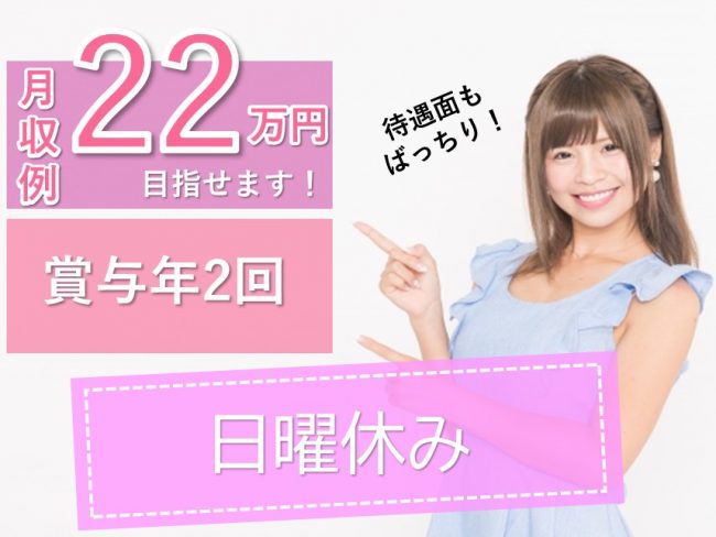 施設経験あり日勤のみ日曜休み昇給あり月給20万円以上可能未経験歓迎残業月10時間以下産休・育児休業制度あり託児施設あり賞与あり(年2回以上)車・バイク通勤OK 募集要項