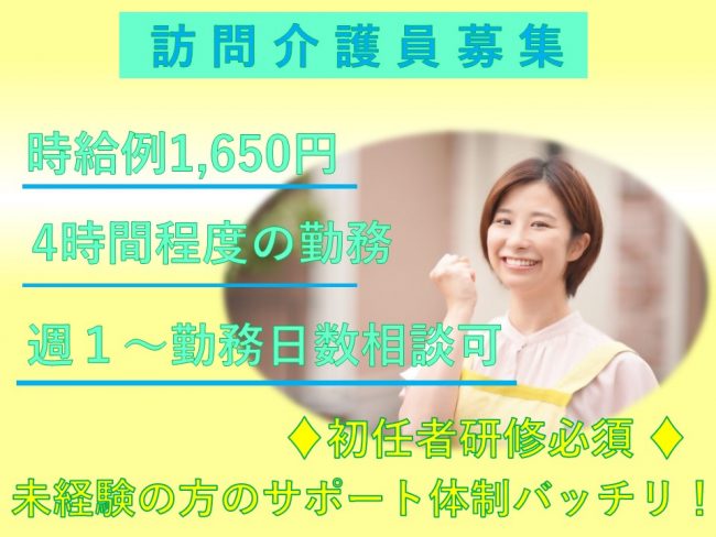 ヘルパーステーションでの訪問介護員/4時間勤務/時給例1,650円