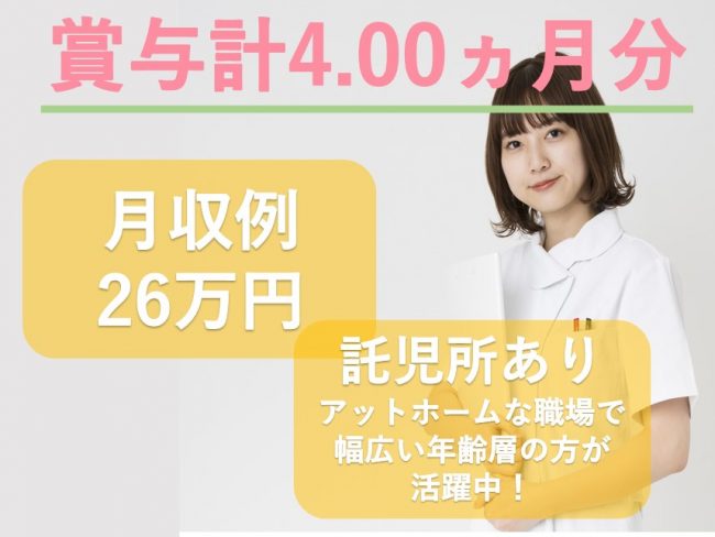 | 職種 | 訪問看護/月収例26万/託児所完備 |