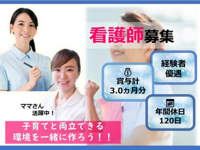 特別養護老人ホームでの看護職/月収例26万円/賞与計3.0ヵ月分