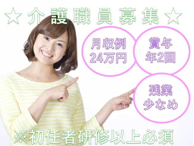 有料老人ホームでの介護職/月収例24万円/賞与年2回あり