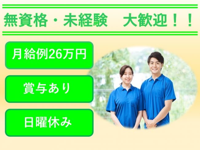 | 職種 | デイサービスでの介護職/月収例26万円/日曜休み |