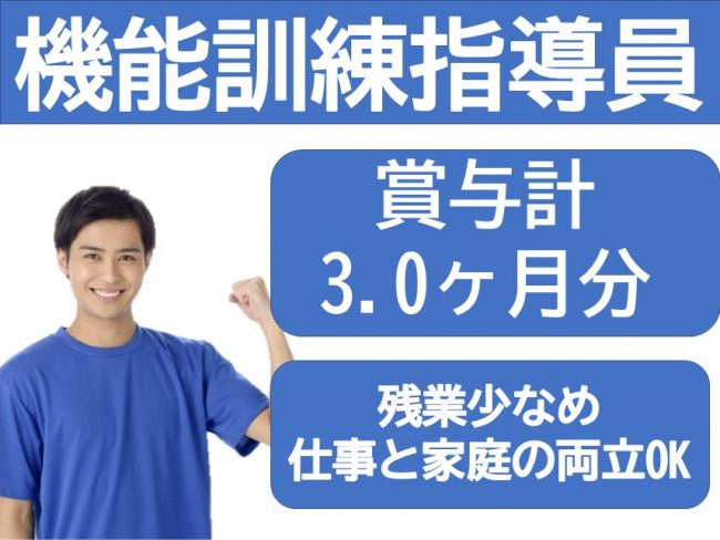 特別養護老人ホームでの機能訓練指導員/月収例24万円/賞与計3.0ヵ月分