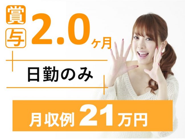 | 職種 | 地域包括支援センターでの包括職員/月収例21万円/賞与計2.00ヵ月分 |