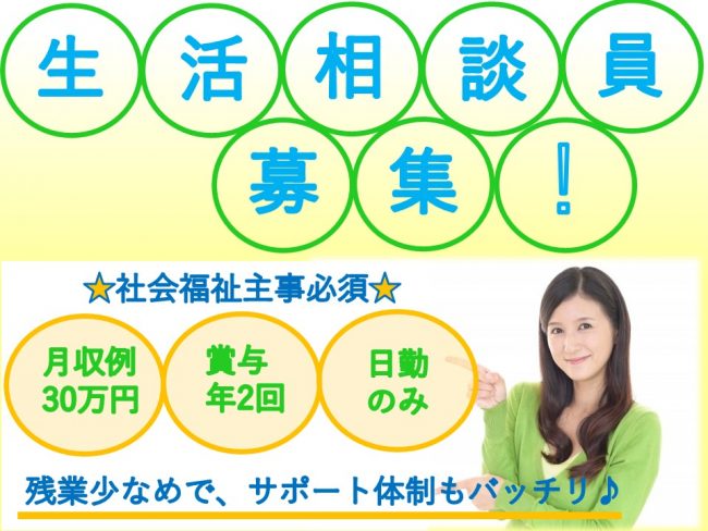 | 求める人材 | ・年齢:~64歳(定年を上限) ・学歴:不問 ・必要な資格:社会福祉主事必須 社会福祉士(あれば尚可) ・必要な免許:普通自動車運転免許必須(AT限定可) ・必要な経験等:不問 ・必要なPCスキル:文章の入力程度 |