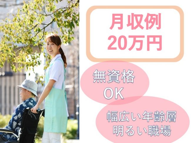 | 職種 | グループホームでの介護職/月収例20万円/施設見学OK |