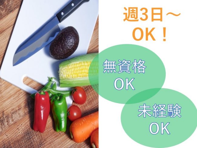 | 職種 | 高齢者介護施設での調理補助/未経験可/正社員登用あり/託児所あり |