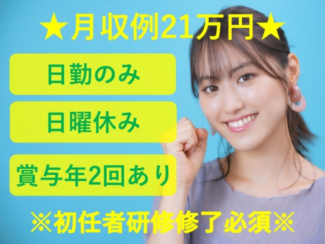 デイサービスでの介護職/初任者研修修了必須/月収例21万円/日勤のみ