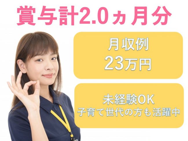 特別養護老人ホームでの介護職/月収例23万円/賞与計2.0ヵ月分