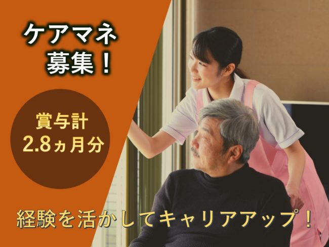 | 職種 | 居宅介護支援事業所でのケアマネ/月収例28万円/賞与計2.8ヵ月分 |