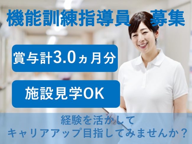 特別養護老人ホームでの機能訓練指導員/月収例25万円/賞与計3.0ヵ月分