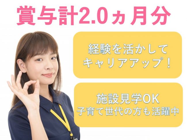 施設見学OK昇給あり月給20万円以上可能残業月10時間以下産休・育児休業制度あり資格手当あり賞与あり(年2回以上)車・バイク通勤OK 募集要項