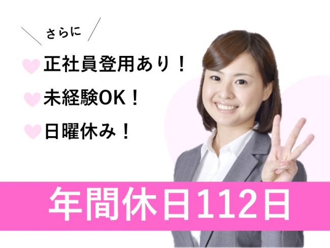 年間休日110日以上日勤のみ日曜休み未経験歓迎正社員登用あり残業月10時間以下産休・育児休業制度あり車・バイク通勤OK 募集要項