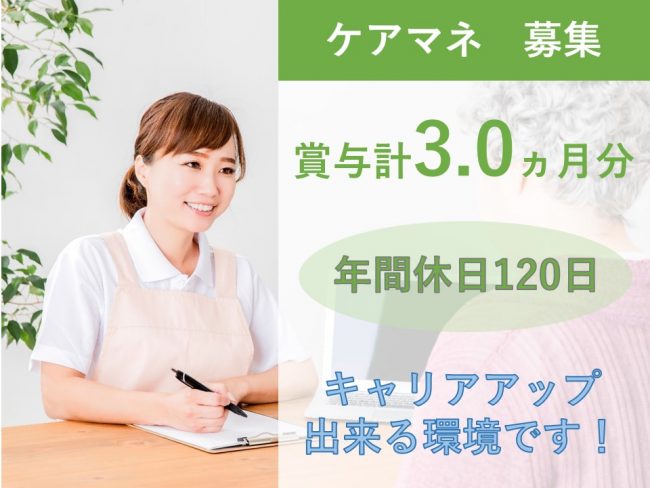 特別養護老人ホームでのケアマネ/月収例26万円/賞与計3.0ヵ月分