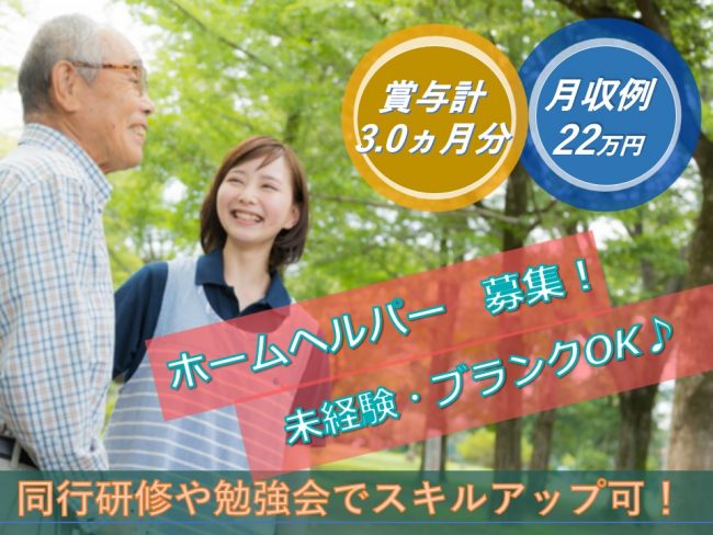 | 職種 | ホームヘルパー/月収例22万円/賞与計3.0ヵ月分 |