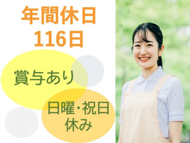 デイサービスセンターでの介護職/年間休日117日/日祝休み