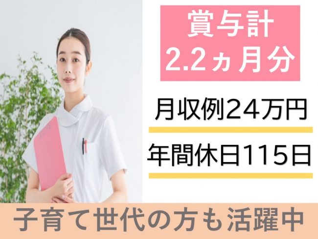 | 職種 | 介護医療院での看護職/月収例24万円/賞与計2.2ヵ月分 |