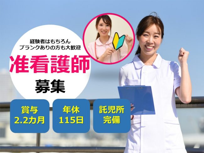 特別養護老人ホームでの看護職/賞与計2.2ヵ月分/託児所完備