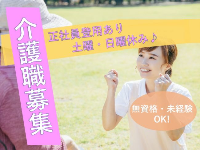 | 職種 | デイサービスでの介護職/正社員登用あり/土曜・日曜休み |