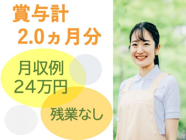 | 職種 | デイサービスでの看護職/月収例24万円/賞与計2.00ヵ月分 |