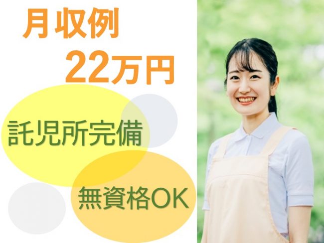 | 職種 | 小規模多機能型居宅介護での介護職/月収例22万円/託児所完備 |