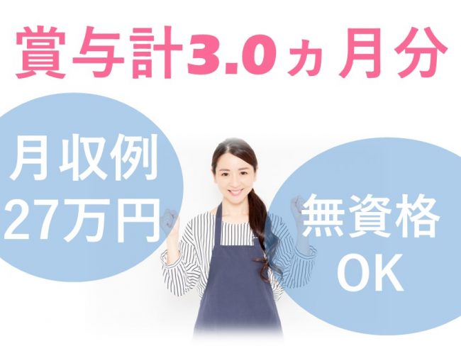 特別養護老人ホームでの介護職/月収例27万円/賞与計3.0ヵ月分