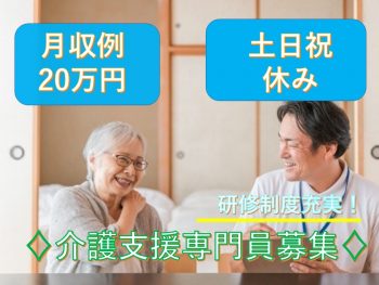 | 職種 | 特別養護老人ホームでのケアマネ/月収例27万円/賞与計3.0ヵ月分 |