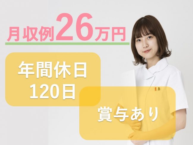 | 職種 | 特別養護老人ホームでの看護師/月収例26万円/年間休日120日 |