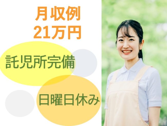 | 職種 | デイサービスでの介護職/月収例21万円/託児所完備 |