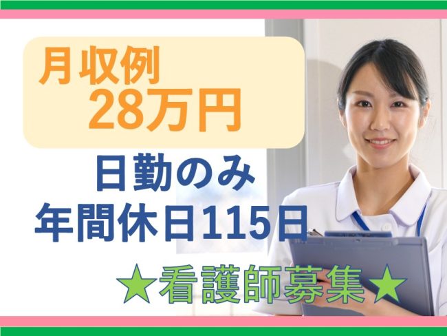 | 職種 | 特別養護老人ホームでの看護職員/月収例28万円/日勤のみ |