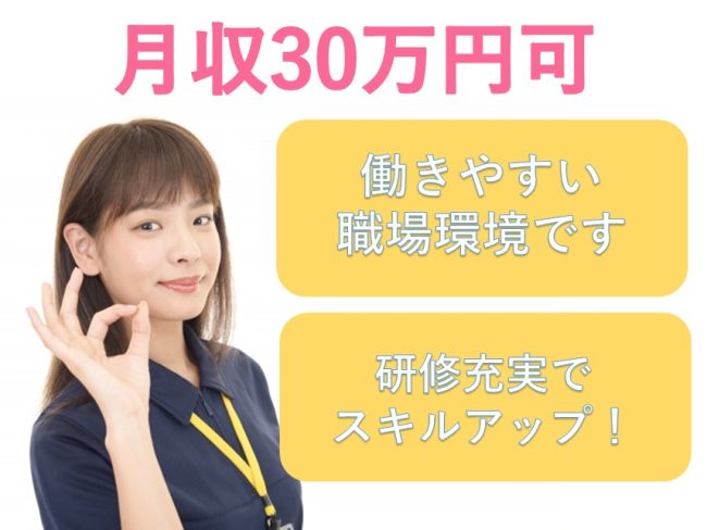 | 職種 | 特別養護老人ホームでの介護福祉士/月収例30万円可/介護福祉士必須 |