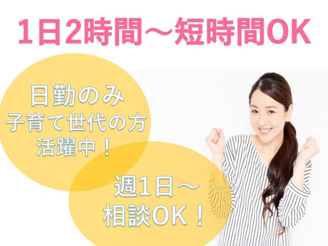 週1日・1日2時間~勤務できますので、お気軽にお問い合わせください。