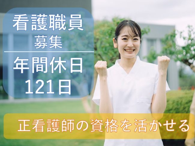 | 職種 | 特別養護老人ホームでの看護師/年間休日121日/夜勤なし |
